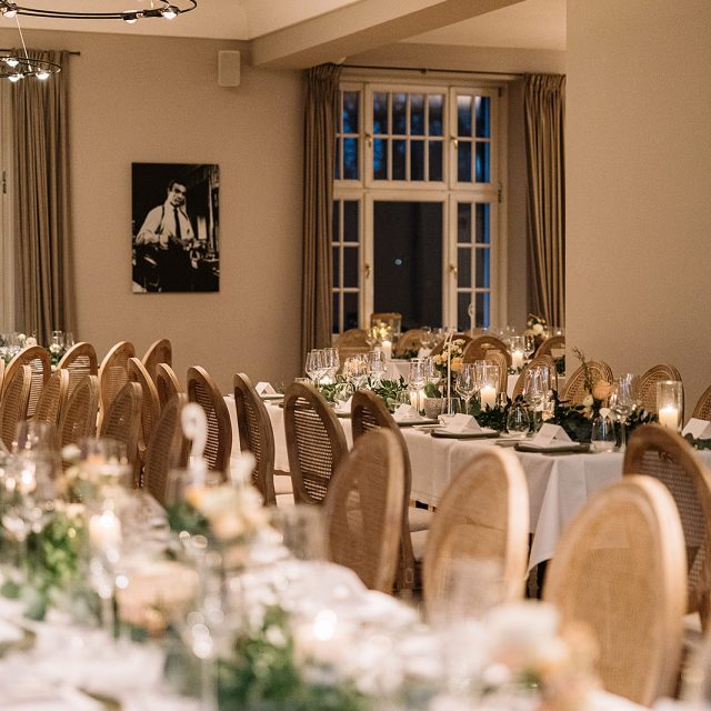 Unsere stilvolle Villa bietet Ihnen die perfekte Kulisse für eine romantische Winterhochzeit. Schon beim Betreten werden Ihre Gäste von einer festlichen Atmosphäre empfangen: ein liebevoll dekorierter Saal mit warmem Kerzenlicht, duftendem Glühwein und eleganter Winterdekoration. Lassen Sie sich von der winterlichen Magie verzaubern und gestalten Sie Ihre Feier mit individuellen Highlights – von einer winterlichen Candy-Bar über ein festliches Menü bis hin zu einer atemberaubenden Lichtinszenierung.